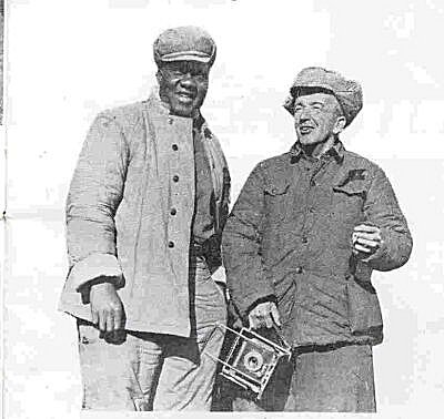 ![]() Off his feet! Arthur Wagner gains a point for Camp 2. | ![]() NEVER WITHOUT HIS CAMERA. Frank Noel, photographer, scans the scene with Milford W. Stanley |